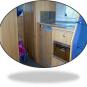 die Garage erhielt einen Einbau Kasten selbst gemacht und im Wohnbereich ein zwischen Stück aus Laminat von der Fahrerkabine zum Wohnbereich